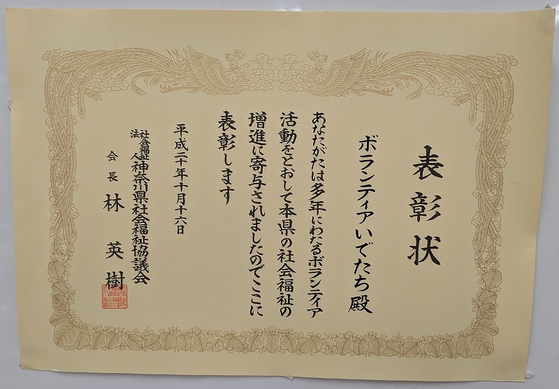 「いでたち」が平成30年度神奈川県社協会長の功労賞を受賞