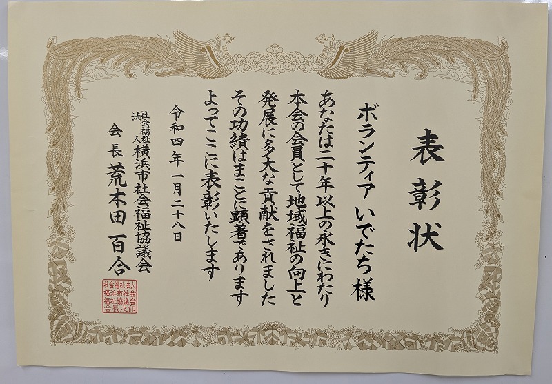 「いでたち」が「令和3年度 横浜市社会福祉協議会会長表彰」を受賞